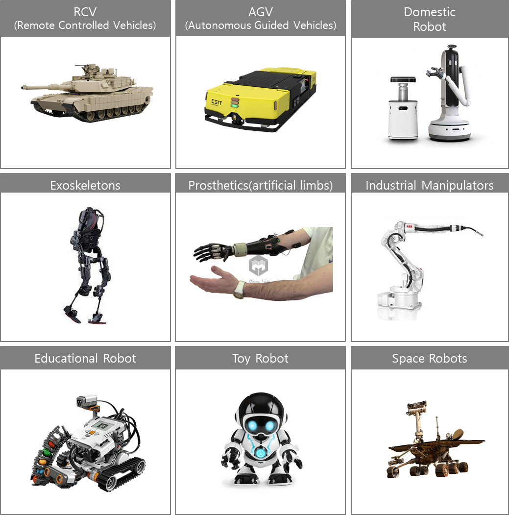 ▪ Exoskeletons : 웨어러블 또는 착용형 로봇이라고하여 사람의 몸에 두르고 힘을 증폭하여 큰힘을 내도록하는 로봇