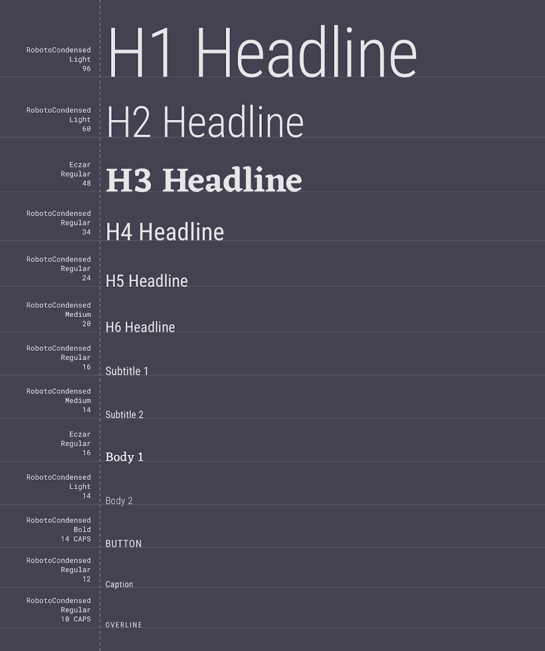 ▪ Eczar and 로보토 응축이라는 두가지 활자 사용