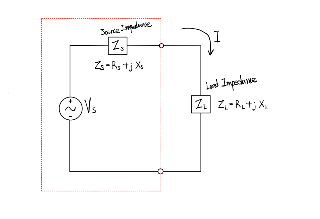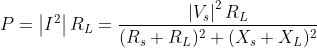 이럴 경우 최대 전력이 어떻게 전달될지 한번 다시 계산해보면 \(\small R_{L}=\sqrt{R_{s}^{2}+(X_{s}+X_{L})^{2}}\) 조건을 갖게 됩니다.