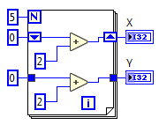 문제에서 제시한 코드를 보고 실행 후 출력 값을 찾는 문제이다. 첫번째로, For문의 카운트 터미널(N)에 5가 지정되었으므로 5 사이클 반복되는 것을 알 수 있다. 두 숫자형 상수 0이라는 값이 루프로 전달되고 사이클이 반복될 때마다 위쪽과 아래쪽 코드가 모두 '+2'씩 연산되는 것을 알 수 있다. 이때 차이점은 위쪽의 코드는 시프트 레지스터(Shift Register)로 구성되어있고 아래쪽은 그냥 터널 형태로 작성되어졌다는 것이다. LabVIEW 반복문(For문 또는 While문)에서 데이터를 저장하여 다음 사이클로 넘겨주는 역할을 하는 것이 시프트 레지스터(Shift Register)라고 하겠다. 시프트 레지스터와 관련된 내용은 NI 사이트 링크를 참조하도록 하자.