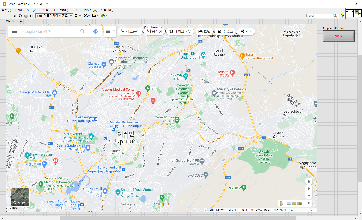 LabVIEW 프런트 패널에서 Google Maps 화면을 띄우는 예제(Web Browser 기반)