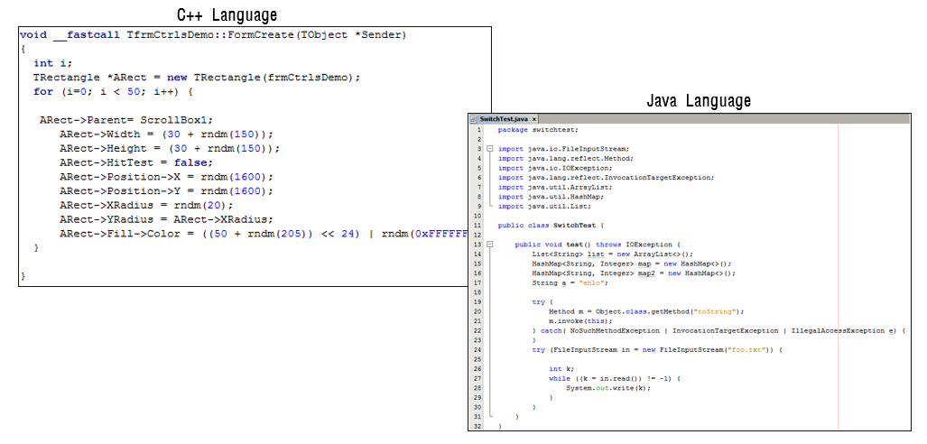 LabVIEW를 한번이라도 접하신 분들은 바로 감을 잡으셨을 것이라 생각이들고 처음이신 분들을 위해 다시 설명을 이어가겠습니다. 분명 LabVIEW도 프로그래밍 언어(Visual Basic, C, C#, C++, Python 등)라고 소개하였는데, 도통 영상을 보아도 이게 무엇인지 감이 안잡히실 것 같은데요. 아래의 예시 그림들이 아마 일반적으로 우리가 프로그래밍 언어라고 하였을 때 생각하는 화면의 모습일 것 입니다.