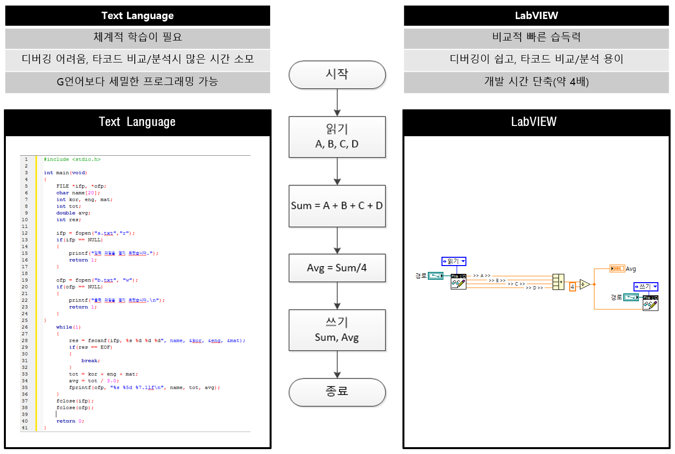 텍스트 언어와 랩뷰 비교