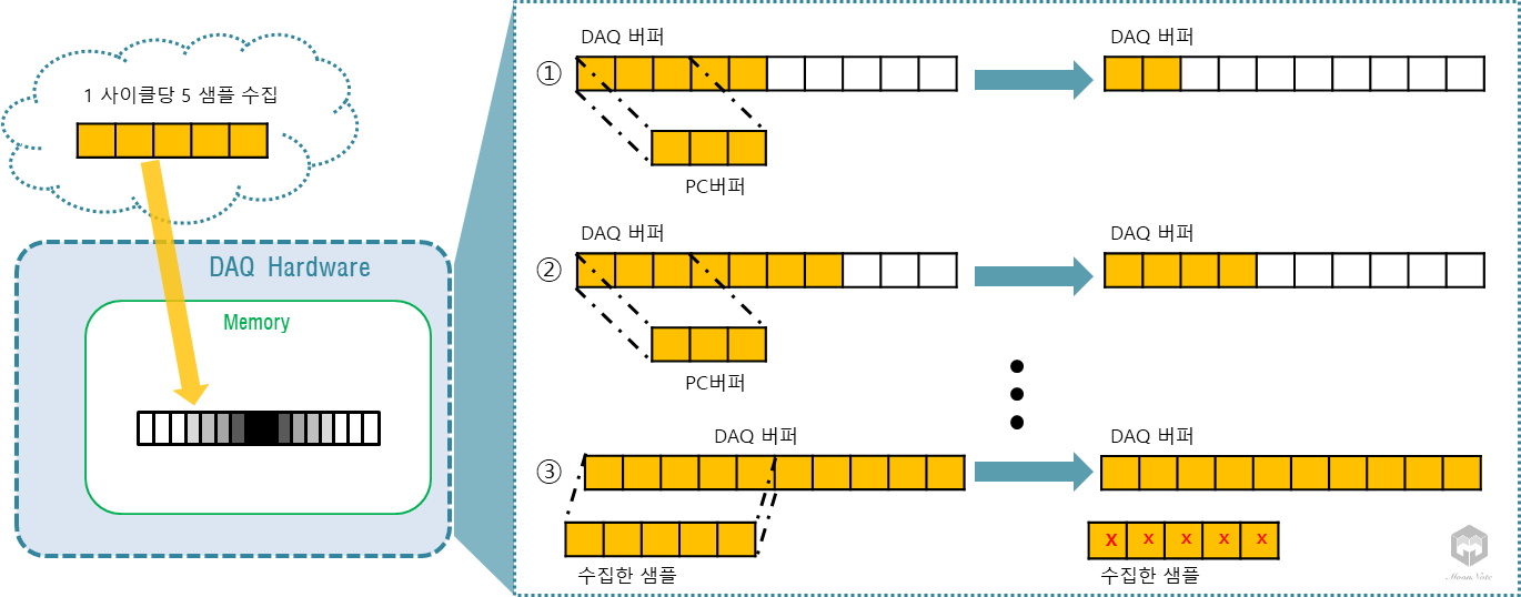 - PC 버퍼의 Sampling Rate를 높이거나, DAQ 버퍼(FIFO)의 Sampling Rate를 낮춰주는 방법