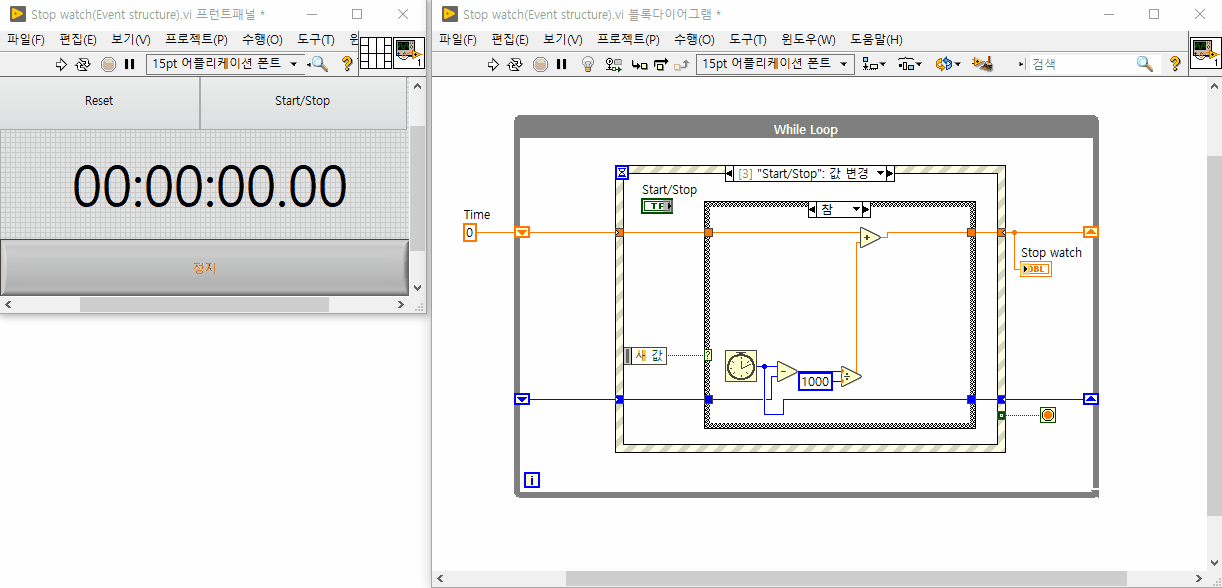 이벤트 구조를 사용해서 한번 스탑워치를 만들어보겠습니다. 실습하면서 중간중간 Event 구조의 특성에 대해 추가 설명을 하겠습니다.