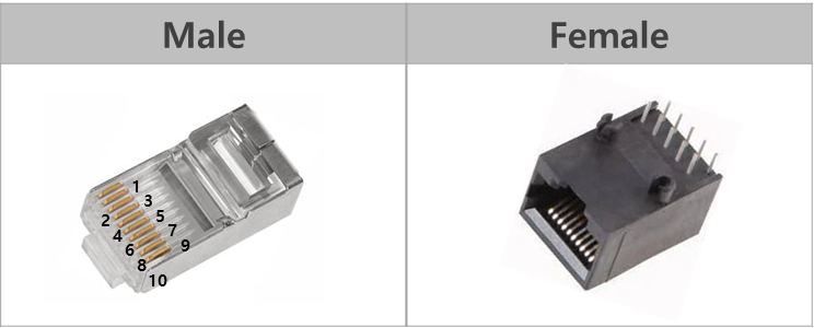 RJ-45와 유사한 직사각형 형태의 10P10C로 구성되어있습니다.