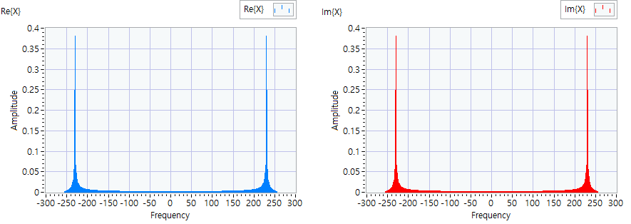 개념은 어느정도 파악되었으니 한번 신호를 FT한 모습을 살펴보면 아래의 이미지처럼 정현파의 주파수 영역이 음의 영역과 양의 영역 두 군데에서 나타나는 것을 알 수 있습니다. 파형의 Amplitude가 음과 양으로 Fluctuation하고 있기 때문에 Frequency-domain에서도 음과 양의 영역에서 FT 결과가 나타나게 되는 것이죠. 일반적인 장비들의 경우 보통 양수만 취급하기에 크게 신경쓰지 않습니다만, 이후 포스팅에서 DFT 및 FFT를 다룰 때 이러한 현상이 나타나니 참고하시면 좋을 듯 합니다.