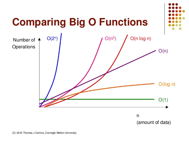 시간 복잡도란, 입력에서 출력이 진행될 때까지 걸리는 시간을 말합니다. 컴퓨터에서 작동하는 알고리즘이 취해 시간으로 정량화 한 것이죠. 그리고 이런 알고리즘의 효율성을 표기해 주는 방법이 Big-O 표기법인 것이죠. O(1), O(logN), O(N), O(NlogN), O(\(N^{2}\)), O(\(N^{3}\)), O(\(2^{N}\)), O(N!) 의 형태로 표기하며 아래는 이를 비교한 차트입니다.