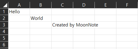 ▪ A1 : Hello, B1 : World, C1 : Created by MoonNote