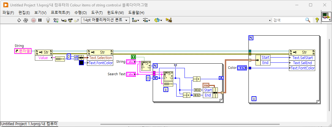 VI내 String, Search Text 및 변경할 색상 지정 후 코드 실행
