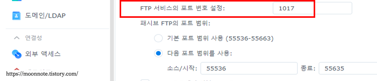 기본적 FTP 포트는 21로 지정되어 있으나 본문에서는 아래의 FTP 서비스 포트 번호 설정을 '1017'로 변경하여 사용하였습니다. 기본 포트 설정을 사용하는 경우라면 해당 스텝은 스킵처리하도록 합니다.