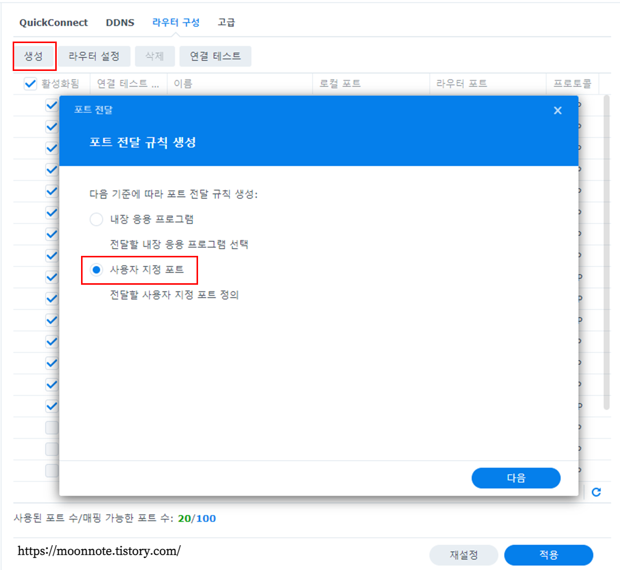 NAS FTP 기본 설정의 패시브 FTP 포트 또한 동일하게 포트 포워딩을 시켜줍니다.