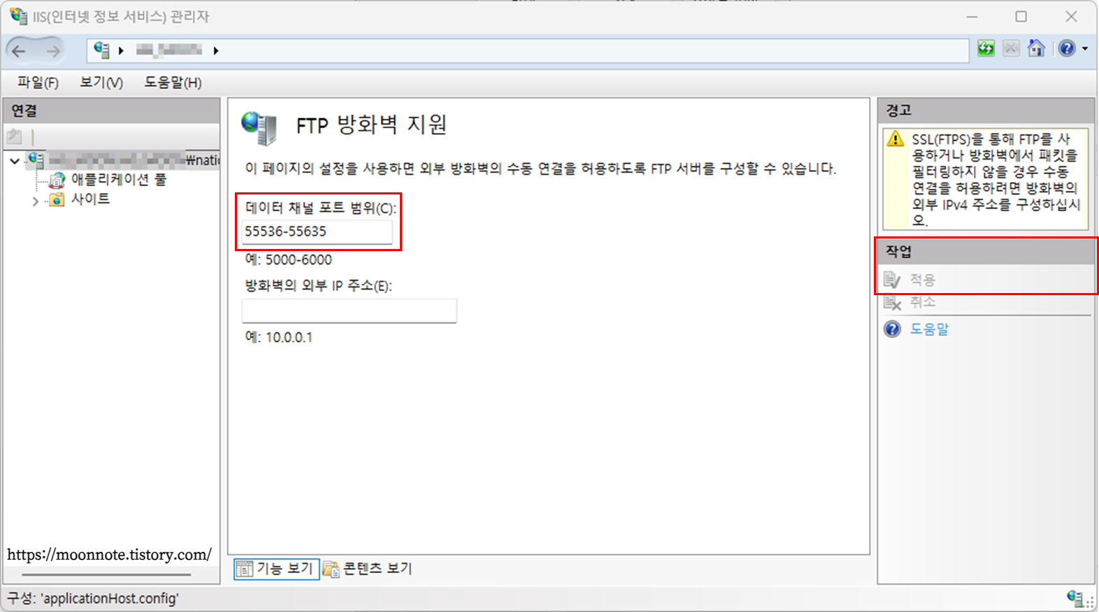 3. 사용할 FTP 포트 지정 (Default : 21 port)