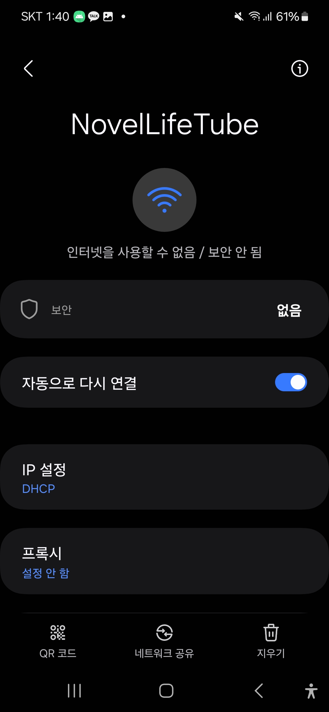 다만, Power On 이후 제품과 Wifi연결을 시켜주어야 하므로 Wifi로 "NovelLife Tube"를 찾아서 연결시켜준다.
