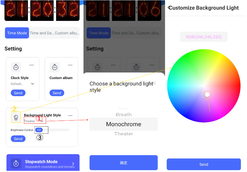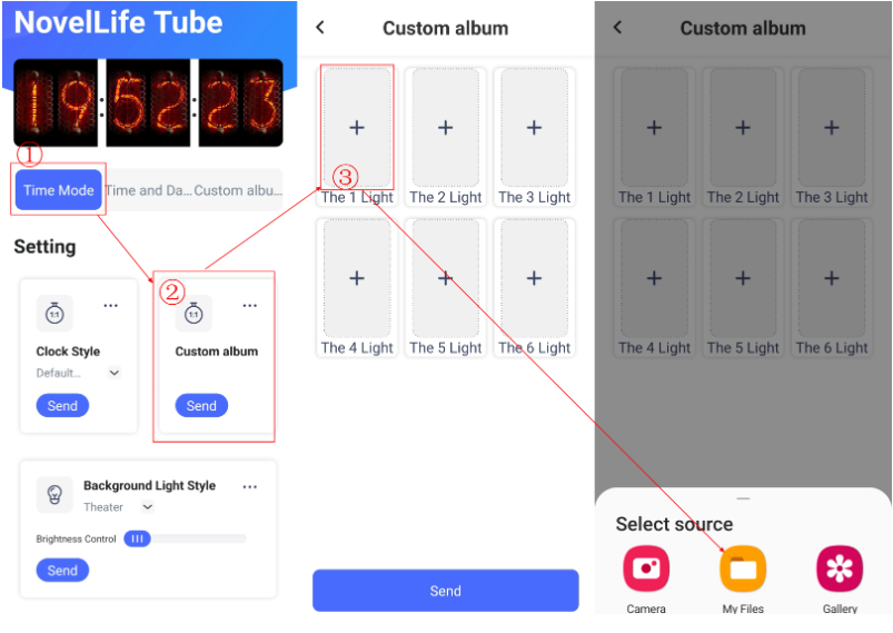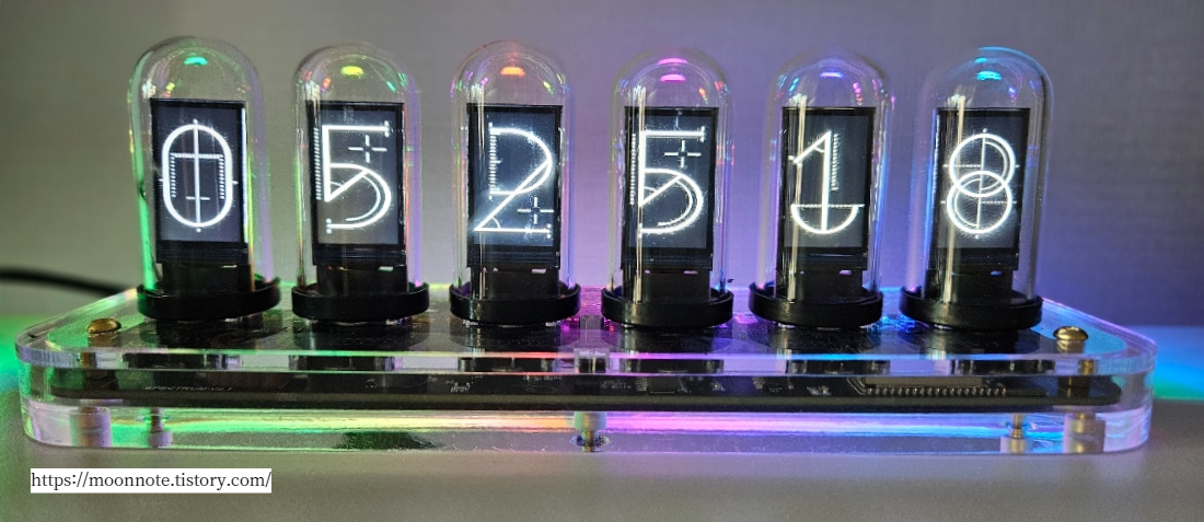 위의 Nixie Tube 사용법 안내처럼 사용자 정의 앨범 메뉴를 사용하면 원하는 이미지를 스크린마다 전송하여 띄울 수 있다. 시계만 사용할 생각이라 따로 설정을 건드리고 싶지 않아 이 부분은 판매처에서 올려둔 이미지로 대체하고자 한다. 아래의 이미지다.