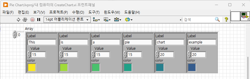 - CreateChart.vi 열기 >> 컨트롤 값 입력
