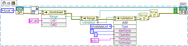 Excel file의 특정 셀에 콤보 박스 값 설정 (Office 365로 검증)