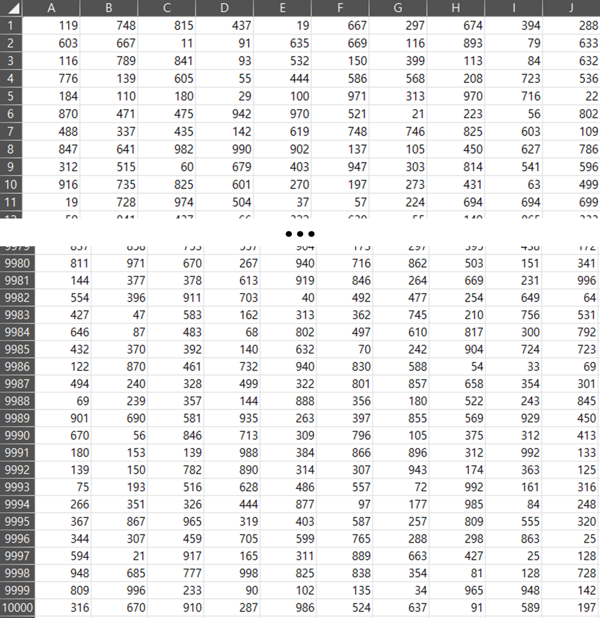 ▪ 새 워크북을 통해 코드에서 실행한 10000 × 10 데이터 Excel file로 저장