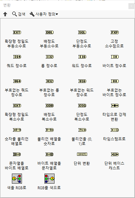 위에서 언급하였던 강제 변환점을 막기 위하여 LabVIEW 에서는 다양한 형변환 함수를 제공합니다.