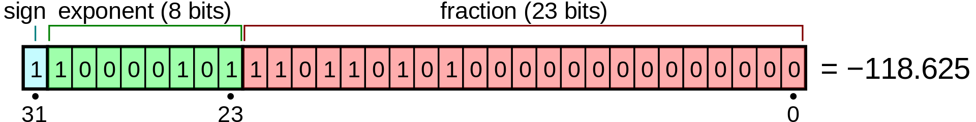 IEEE 754 32비트 단정밀도 표현 이미지 (출처 : 위키 백과)