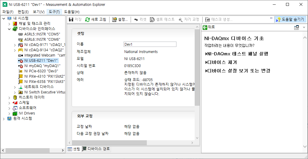 NI MAX 디바이스 프로퍼티에서 장비가 시뮬레이션인지 나타내는 항목은 무엇인지 물어보는 문제이다. NI MAX란 'NI Measurement & Automation Explorer'의 약자로 NI 관련 태스크, 디바이스, 소프트웨어 등의 하드웨어와 소프트웨어를 관리해주는 소프트웨어 패널이라고 보면 된다.