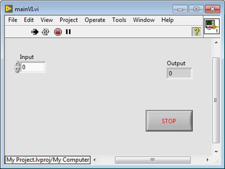 4. Click the Abort button in the toolbar to immediately terminate execution of the VI.