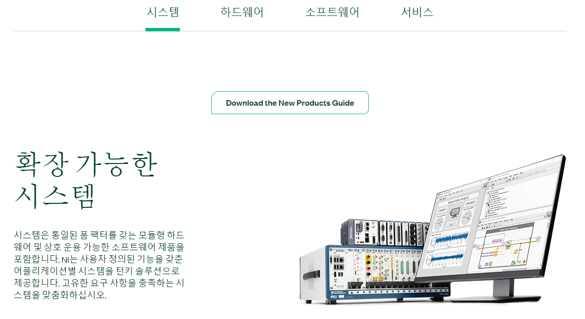 NI 사이트의 시스템 관련 화면 "System = Hardware + Software + Services"