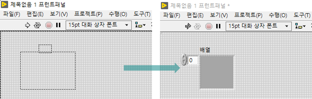컨트롤 또는 함수 팔레트에서의 배열 쉘 위치